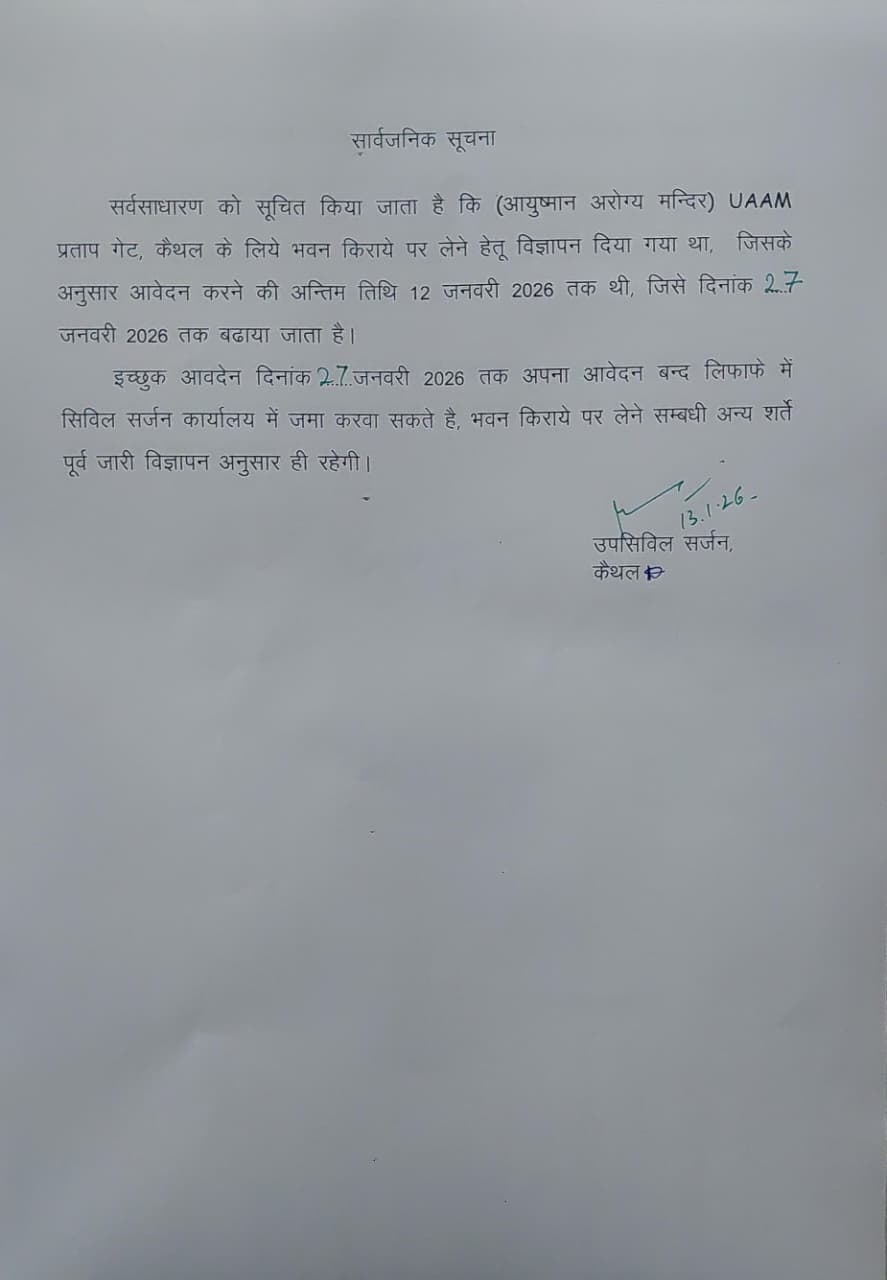 Requirement of Building Space for Aayushmaan Aarogya Mandir UAAM at Rishi Nagar, Kaithal